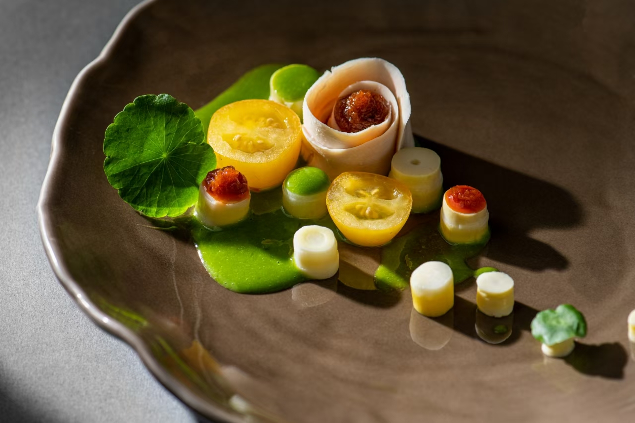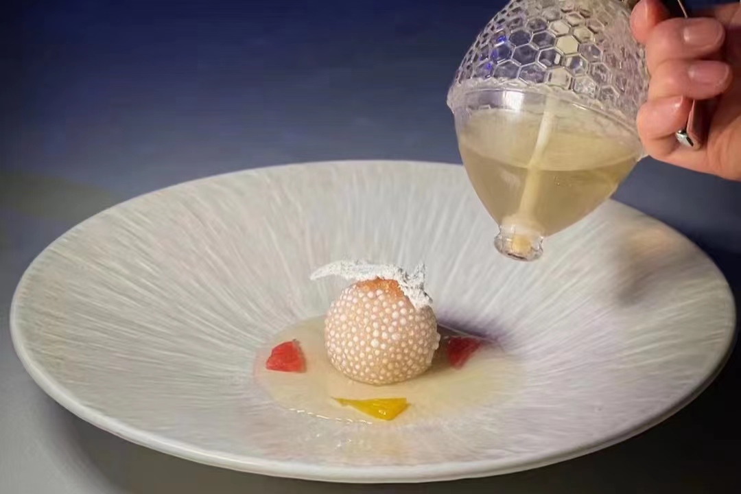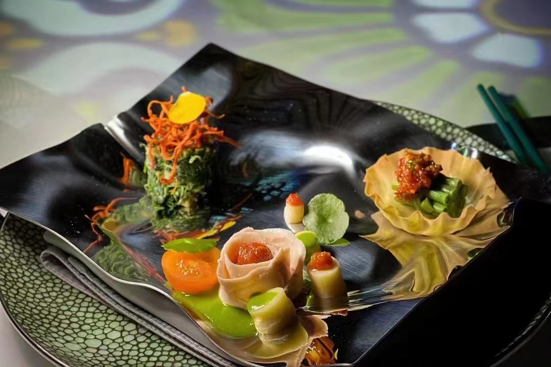 以 “非遗技艺,科学烹饪,自然酵养” 为主题,融餐酒餐茶搭配,传承经典并创新风味,融汇东方,让菜品呈现出滋养身心的东方食养哲学理念。