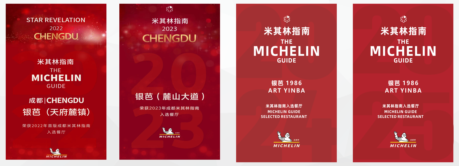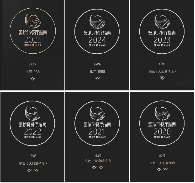 银芭上榜法国LALISTE全球杰出餐厅榜单;2018-2024年上榜黑珍珠餐厅指南;在2019年受邀参加博古斯烹饪大赛,为评委及嘉宾展示分享“匠心川味”;连续八年蝉联黑珍珠餐厅,连续四年蝉联米其林餐厅指南“入选餐厅”。